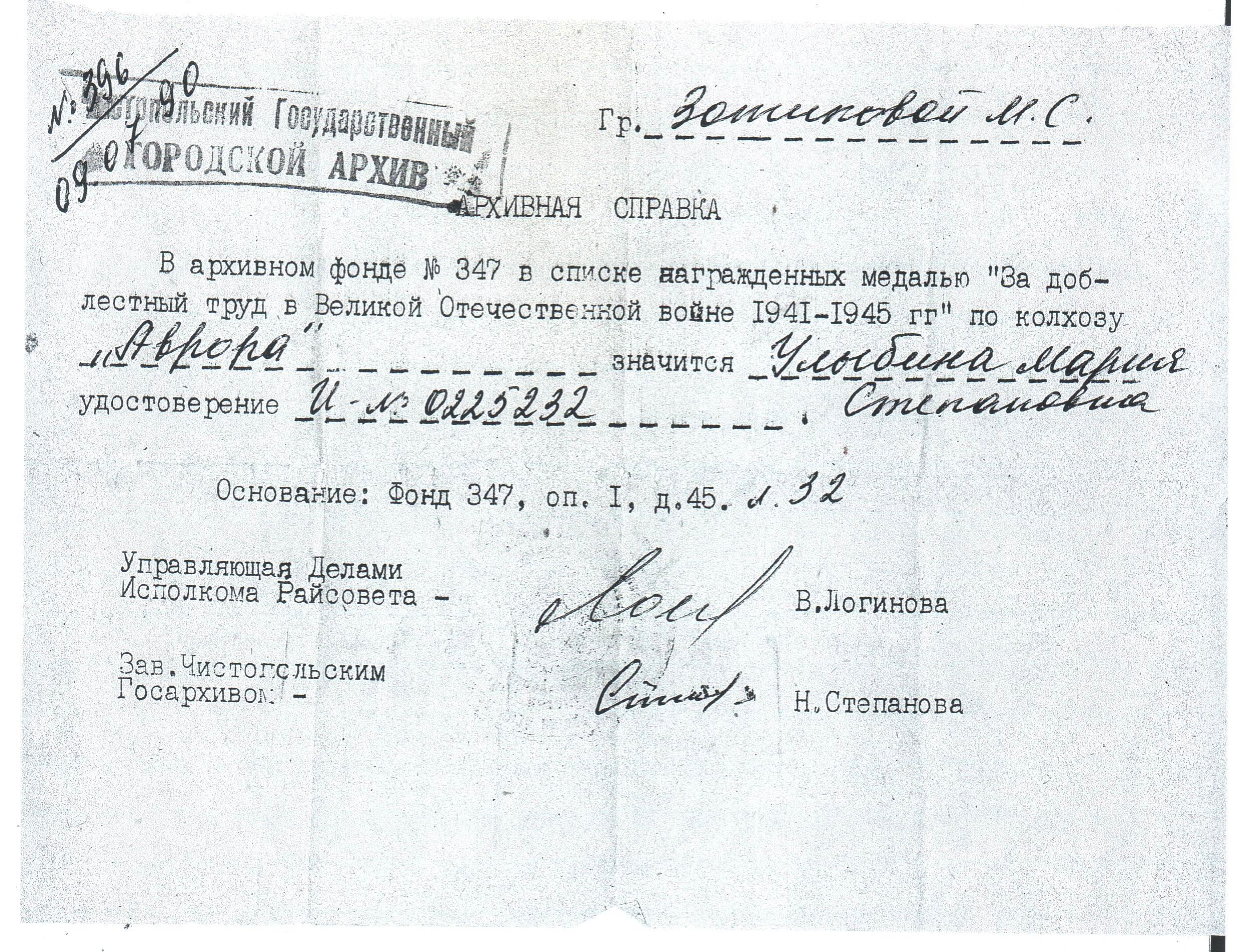 ЗОТИКОВА МАРИЯ СТЕПАНОВНА (УЛЫБИНА)