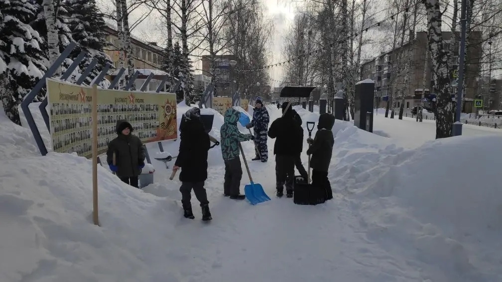 В рамках акции «Дорога к обелиску» школьники Менделеевска приняли участие в уборке снега на территории Аллее Героев, посвященной памяти земляков – участников Великой Отечественной войны.