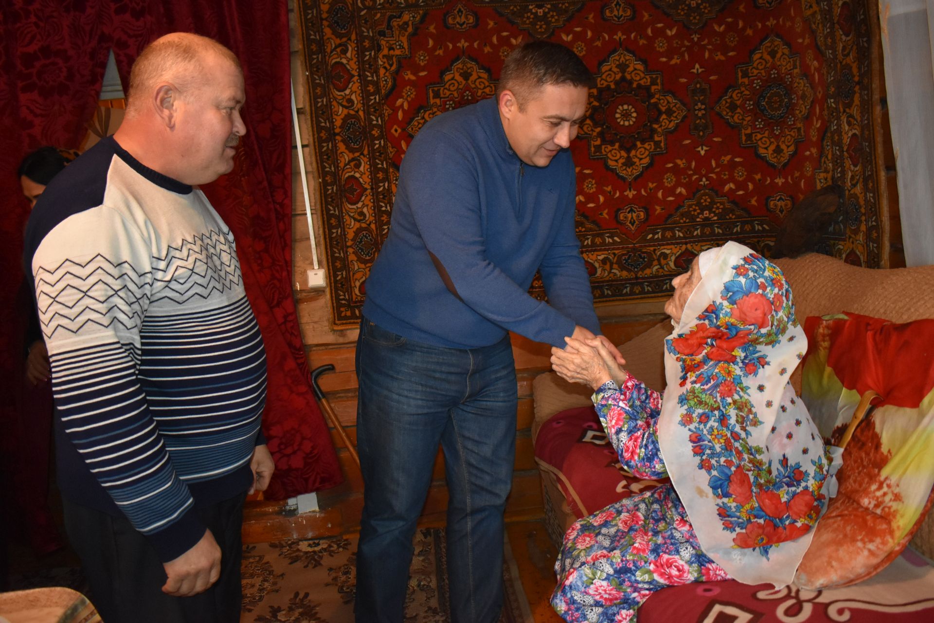 101 яшьлек Нурлыбәнәт әби Сафиуллина район башлыгының котлауларын кабул итте
