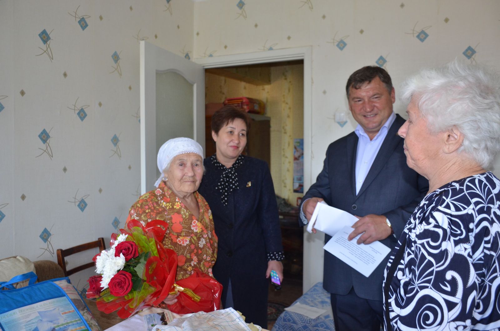 Район башлыгы Валерий Макаровның үзе килеп котлавына, Владимир Путинның да котлау җибәрүенә бик күңеле булды Саҗидә апаның. Сугыш ветеранының тол хатыны буларак бирелгән иркен фатирында илгә-көнгә тынычлык, җитәкчеләргә рәхмәт укып яши Ак әби.