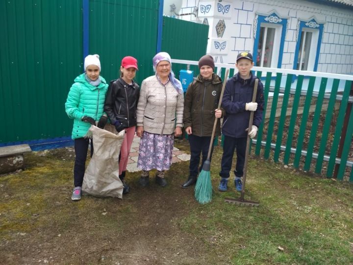 Апас урта мәктәбе укучылары да бу эштә бик актив катнаша. Айсылу Закирова җитәкчелегендәге 5 "А" классы укучылары да үзләре шефлык иткән Әминә апа Саматова янында булып, хуҗалык эшләренә булыштылар.