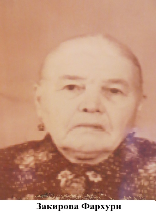 Закирова Фәрхури Мәслак кызы 1909 елда, Беренче Май районы( хәзерге Әлмәт районы) Елховой авылында туып үсә. Фәрхури әбинең туу еллары да, бала чагы да илдәге зур үзгәрешләр белән бәйләнеп барса, матур гына гаилә корып, балалар үстереп яшәгән чорына бөтенләй дә авыр вакытлар туры килә.