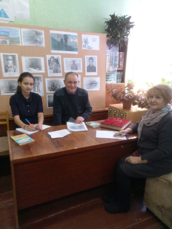 Әфганчы-авылдашыбыз тормыш чыныгуы алган еллары турында истәлекләре беләнур таклашты, дембель альбомы белән таныштырды һәм үзе дә китапханәдә эшләнгән “Утлы еллар хатирәсе” дигән стенд һәм Әфган сугышы турындагы әдәбият белән танышты. Аның сөйләгәннәрен укучы А.Нуретдинова язып алды.