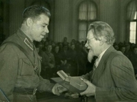1940 елның 30 августында Мәскәүдә ТАСС фотохәбәрчесе А.Грибковский төшереп алган фоторәсемнең артына түбәндәге сүзләр язылган: “29 августта СССР Югары Советы Президиумы Рәисе иптәш М.И.Калинин бүләкләнүчеләргә орден һәм медальләр тапшыра.