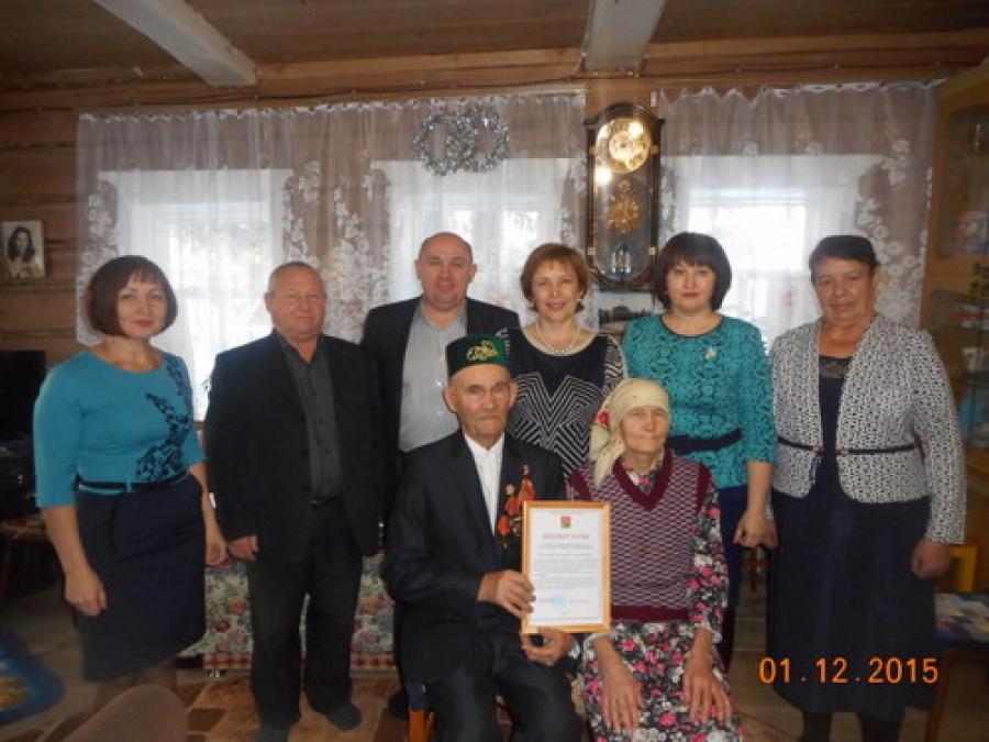 Фәйзелхак абый һәм Тәзкирә апаны олуг юбилее белән муниципаль район Советы аппараты җитәкчесе Фәндәс Вәлиев, социаль яклау бүлеге җитәкчесе Гөлнара Хуҗина, ГХАТ бүлеге начальнигы Гөлчәчәк Вәлишина, район ветераннар һәм инвалидлар җәмгыяте рәисе Нәҗип Миңнеголов, авыл җирлеге башлыгы, якыннары-туганнары котладылар. Фәндәс Вәлиев Фәйзелхак абый һәм Тәзкирә апага район башлыгы Фәрит Хөснуллинның Рәхмәт хатын һәм район башлыгы Фәрит Хөснуллинның бүләген тапшырды. Барлык кунаклар да күчтәнәчләр алып килгән иде.