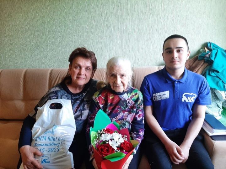 РФ Дәүләт Думасы депутатлары Руслан Гаджиев, Азат Ягафаров Әлмәт бердәмроссиялеләре белән бергә Бөек Ватан сугышы ветераны , концлагерь тоткыны Апраксина Маргарита Викторовна һәм хезмәт ветераны, тыл хезмәтчәне Сәхипгәрәева Суфия Әсхәт кызы янына бардылар. Депутатлар өлкән буынга һәм аларның якын туганнарына рәхмәт сүзләрен җиткерделәр, нык сәламәтлек, рух күтәренкелеге теләделәр.