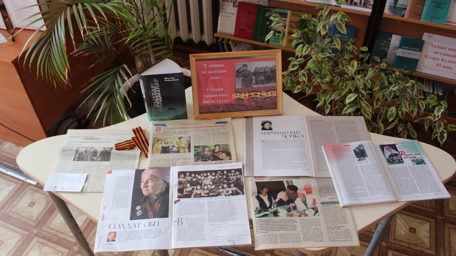 Район китапханәчеләре «Сугыш хатын-кыз йөзле түгел» исеме астында күчмә китап күргәзмәләре оештырдылар