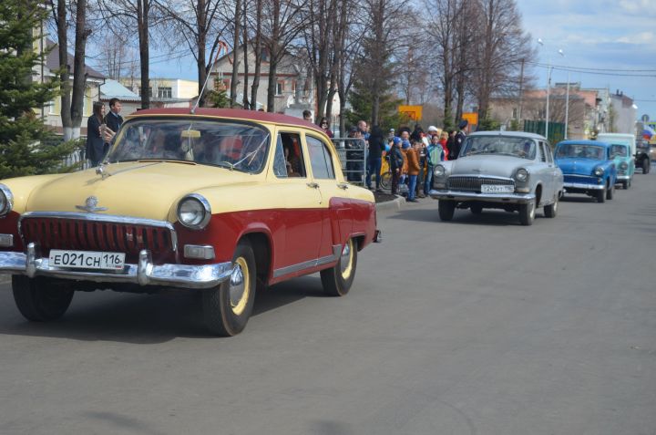 Район үзәгендә үткәрелгән Бөек Җиңүнең 73 еллыгына багышланган тантанага тагын бер матур чара ялганып китте: парадтан соң ретромашиналар һәм автоколонна йөреше башланды.
