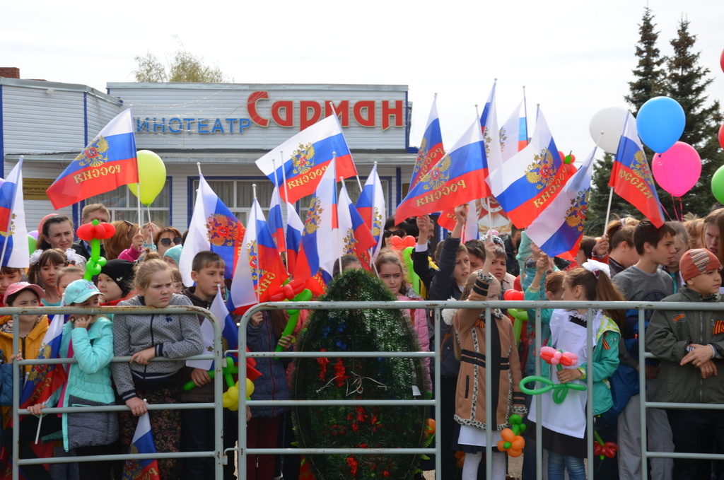 Бүген Сарманда Бөек Ватан сугышында Җиңүнең 72 еллыгын билгеләп үттеләр. Муниципаль район башлыгы Фәрит Хөснуллин район халкын Бөек Җиңү көне белән тәбрикләп, иң изге теләкләрен юллады, Татарстан Республикасы Президенты Рөстәм Миңнехановның котлавын җиткерде. Бәйрәм сәламе булып, матур җырлар, дәртле биюләр башкарылды. Ветераннар исеменнән Кәүҗияк авылыннан Зиннур Газизов чыгыш ясады. Төрле коллективлар строй белән тантаналы рәвештә уздылар, ретро һәм оешмалар бизәгән машиналар парады булды. Ял паркында урнашкан мемориал комплекста Бөек Ватан сугышында һәлак булучылар истәләгенә тере чәчәкләр, тәкыялар салынды, Сарман һәм Мөслим районнары хәрби комиссары Дашгын Гасановның чыгышы тыңланды. Бер минут тынлык игълан ителде, хәрби залп яңгырады. Паркта кыр кухнясы, сәүдә нокталары эшләде, уеннар һәм концерт оештырылды, спорт ярышлары үтте.