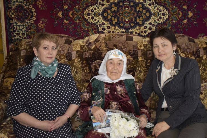 Акъәбигә гомер бәйрәме уңаеннан, Ил башлыгының Котлау хаты, район башлыгының Котлау открыткасы, бүләк һәм чәчәк бәйләмнәре тапшырылды. Район башкарма комитеты җитәкчесе урынбасары Луиза Сафина, Сатмыш авылы җирлеге башлыгы Равилә Сибгатова акъәбигә ихлас теләкләрен җиткерделәр.