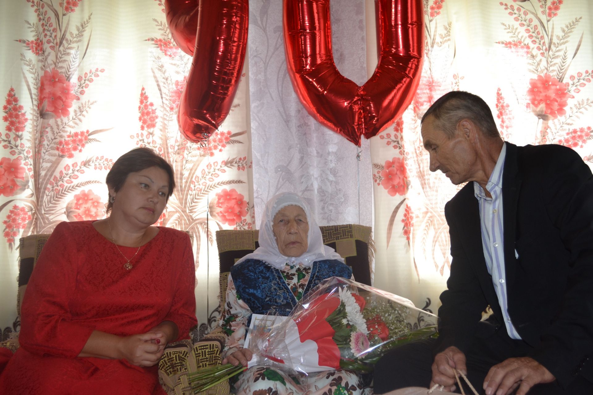 Бу уңайдан Галия апага Ил башлыгының Котлау хаты, район башлыгының Котлау открыткасы, чәчәк бәйләме һәм истәлекле бүләк тапшырылды.