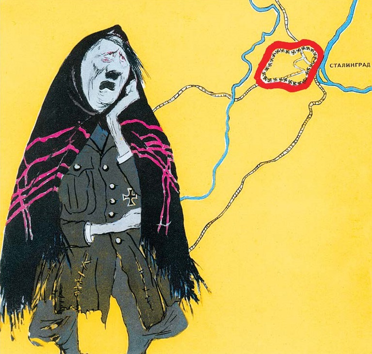 Бу Сталинград камалыш боҗрасында җиңелүгә турыдан-туры ишарә була. Плакат янында "потерла я колечко"рус халык җырыннан сүзләр язылган була.