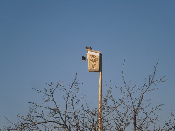 “Әтнәдә сыерчыклар да 70 еллыкны каршылый”. Әтнә районы Ары авылындагы Фидаил Кадимов яшь буында патриотик хис тәрбияләү максатыннан шундый сыерчык оясы ясаган. “Бөек Җиңү бәйрәменнән соң илебезгә 69 тапкыр сыерчыклар килеп киткәннәр, бу хәвефне алар да күргәннәр...”-ди Ф.Кадимов.