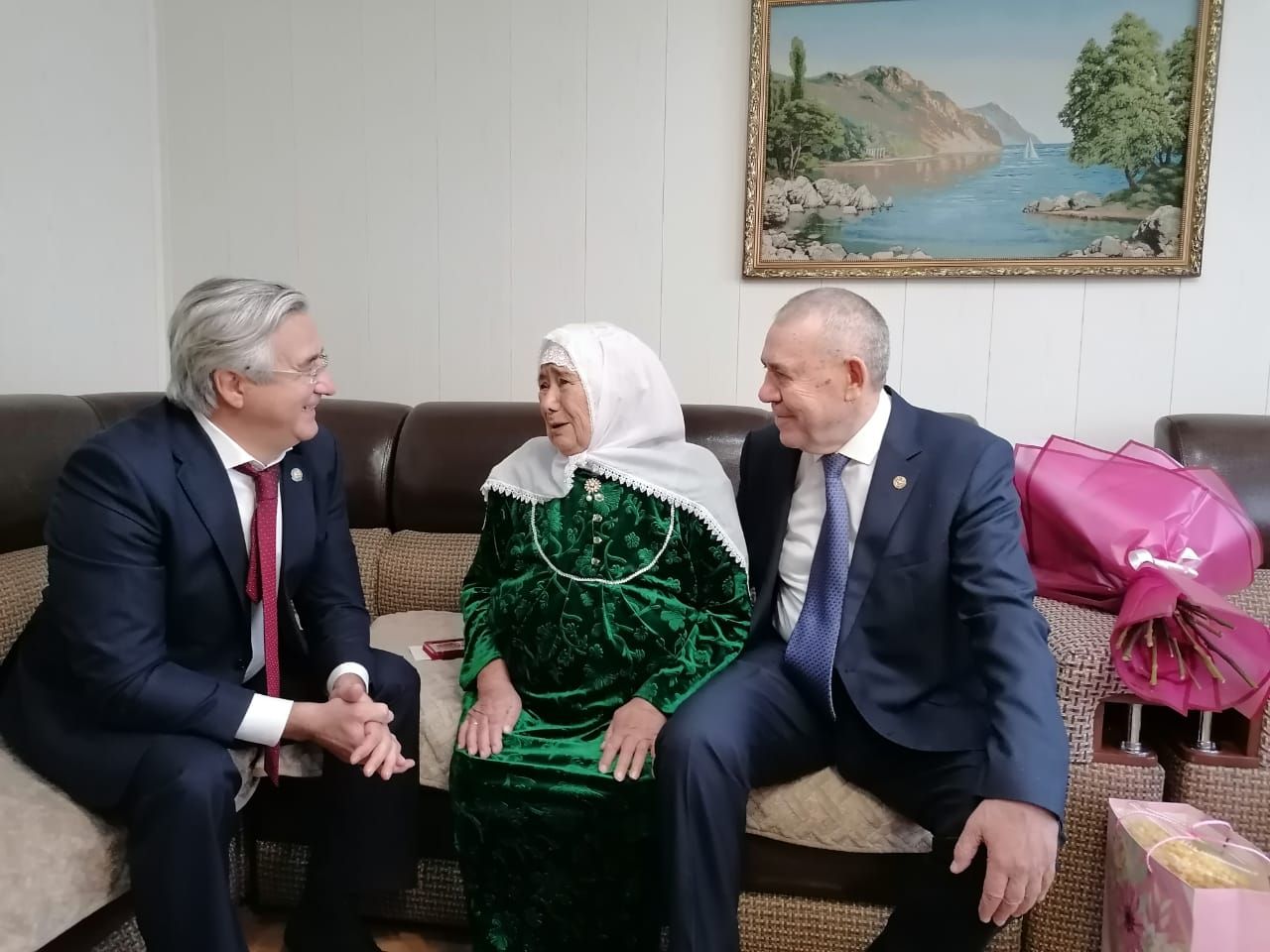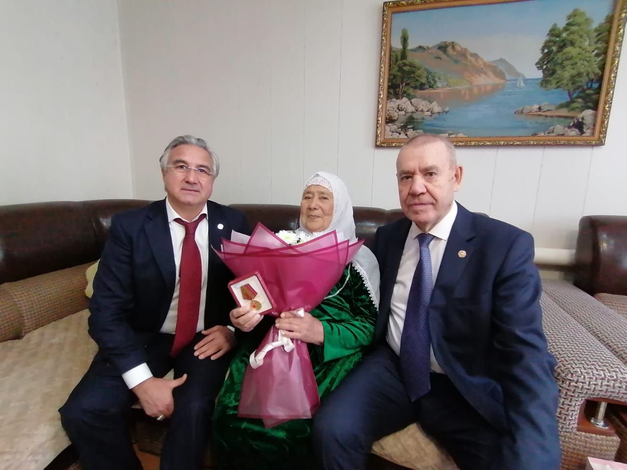 Татарстан Республикасы Премьер-министры урынбасары Васил Шайхразыев һәм районыбыз башлыгы Габделәхәт Хәкимов тыл ветераны Хәдия апа Гатауллинага Бөек җиңүнең 80 еллыгы уңаеннан медаль тапшырды. Васил Шайхразыев Хәдия апаның хәлләрен сорашты. Хәдия апа һәркемгә үзенең изге теләкләрен, рәхмәтләрен җиткерде. "Шундый матур тормышта яшибез, өйләребезгә газ-су кергән, урамнарыбызда асфальт, тормышыбыз бик матур, бик рәхәт. Илләребез тыныч булсын, мине зурлап, хөрмәтләп килгәнегез өчен исән-имин эшләгез", - диде.