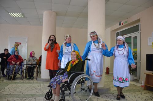Дарья түтинең туган авылындагы танылган “Инвис“ удмурт фольклоры ансамбле ишектә күренү белән Картлар йорты хезмәткәрләре җырчы кызларыбызны кочак җәеп каршы алдылар. Алар биредә үз кеше икән. Әле ноябрь аенда гына интернаттагы өлкәннәргә концерт куеп киткәннәр. “Инвис“ кызлары Дарья түти янына еш килеп торгач, биредә яшәүче башка әбиләрне дә исемләп беләләр инде. Картлыкларын туган йортларыннан читтә үткәрүче әбиләр аларны бу юлы да якын туганнары кебек каршы алдылар, кочаклаштылар, елашып та алдылар.