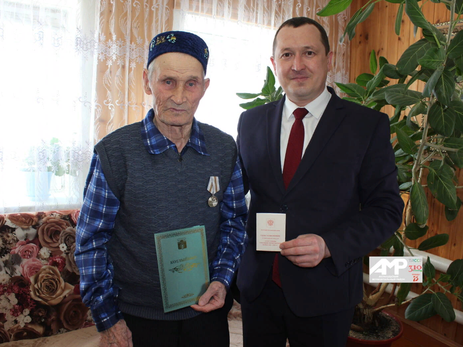 Альберт Индәриф улы Мирзариф Мирзануровның күкрәгенә Җиңүнең 75 еллыгы уңаеннан булдырылган медальне беркетеп, намуслы хезмәте өчен рәхмәт сүзләрен юллады: