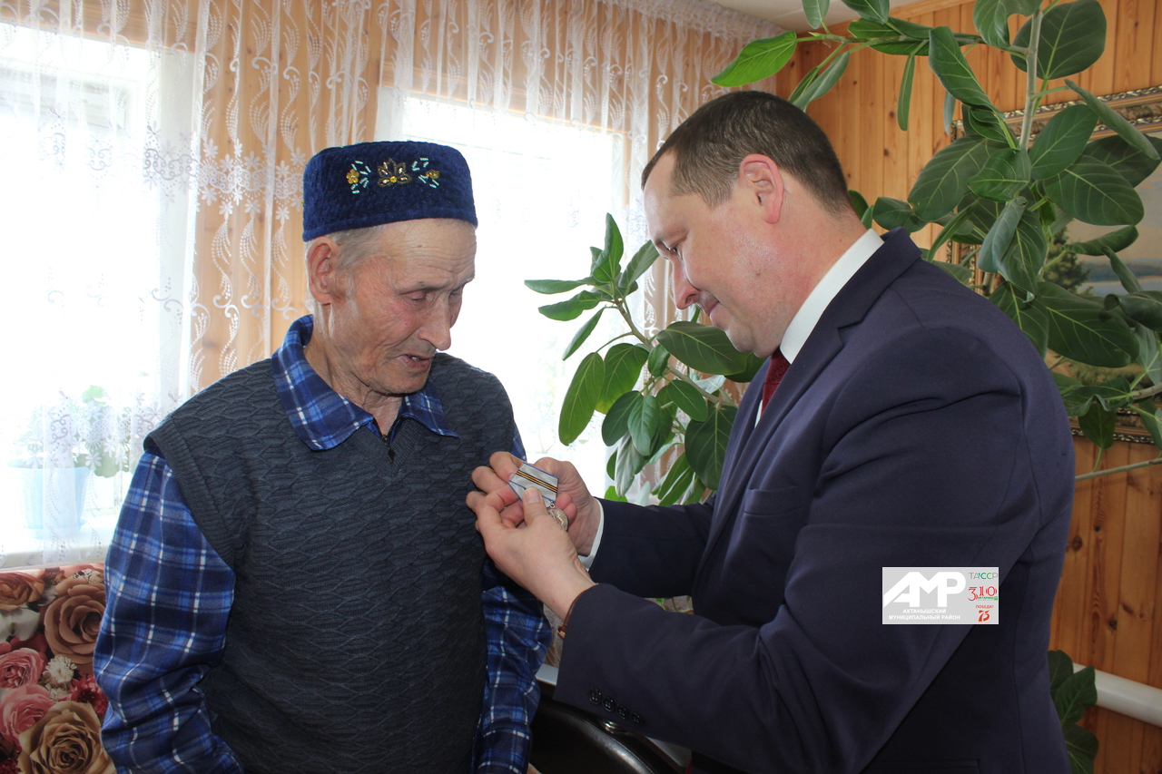 ҖИҢҮ ЯЗЫН КАРШЫЛАП!Тыл ветераны Мирзариф Мирзануровка Бөек Җиңүнең юбилей медале тапшырылды.
