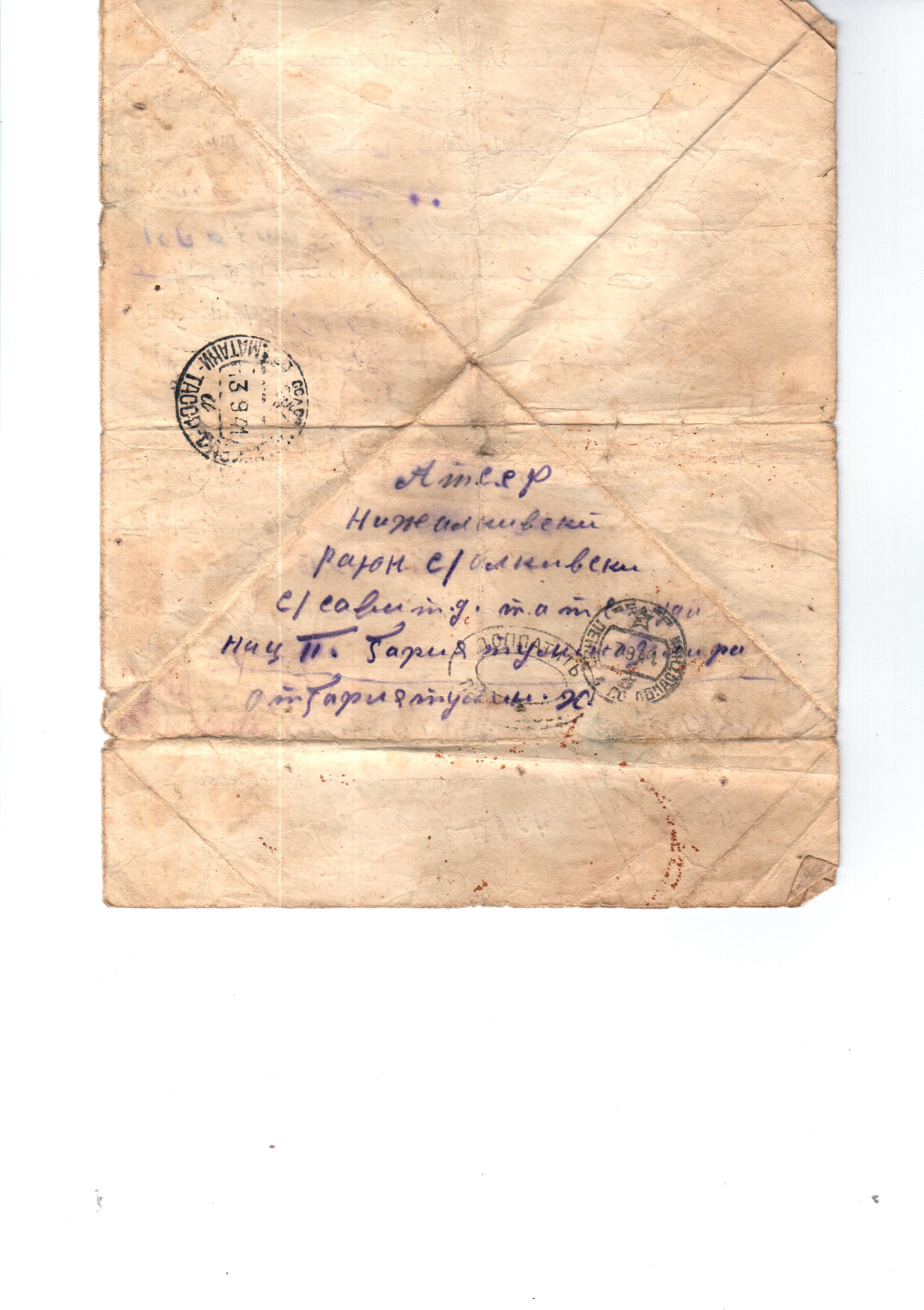 ФРОНТОВОЕ ПИСЬМО ОТ ГАФИЯТУЛЛИНА Х.(ПЕРВОЕ) Район: АлькеевскийПрикреплённые изображения: АрхивларФронтовиклар Опубликовано 27 February, 2020 - 15:47 пользователем Музей Алькеевск...