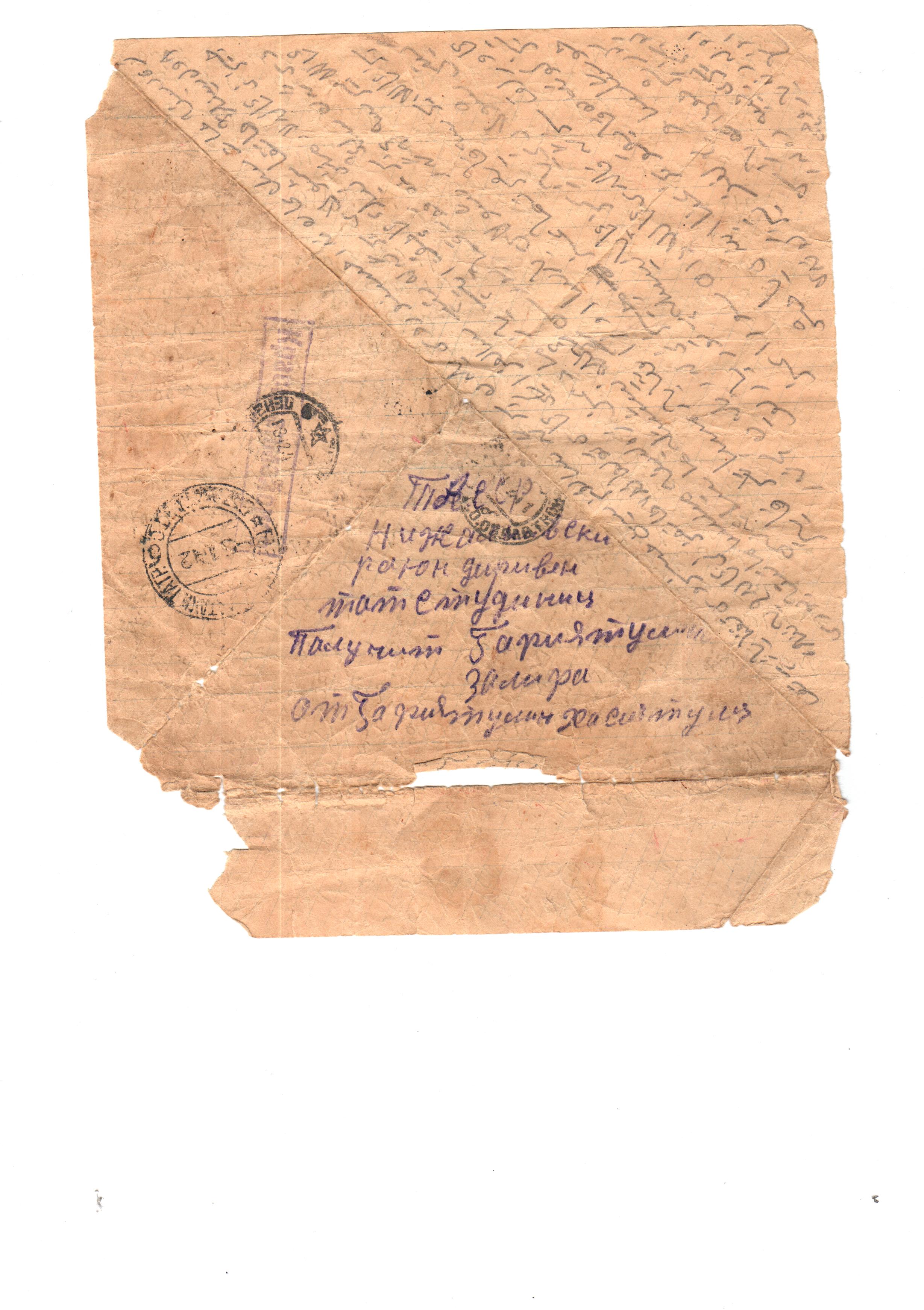 ФРОНТОВОЕ ПИСЬМО ОТ ГАФИЯТУЛЛИНА Х.(ВТОРОЕ) Район: АлькеевскийПрикреплённые изображения: АрхивларФронтовиклар Опубликовано 27 February, 2020 - 15:49 пользователем Музей Алькеевск...