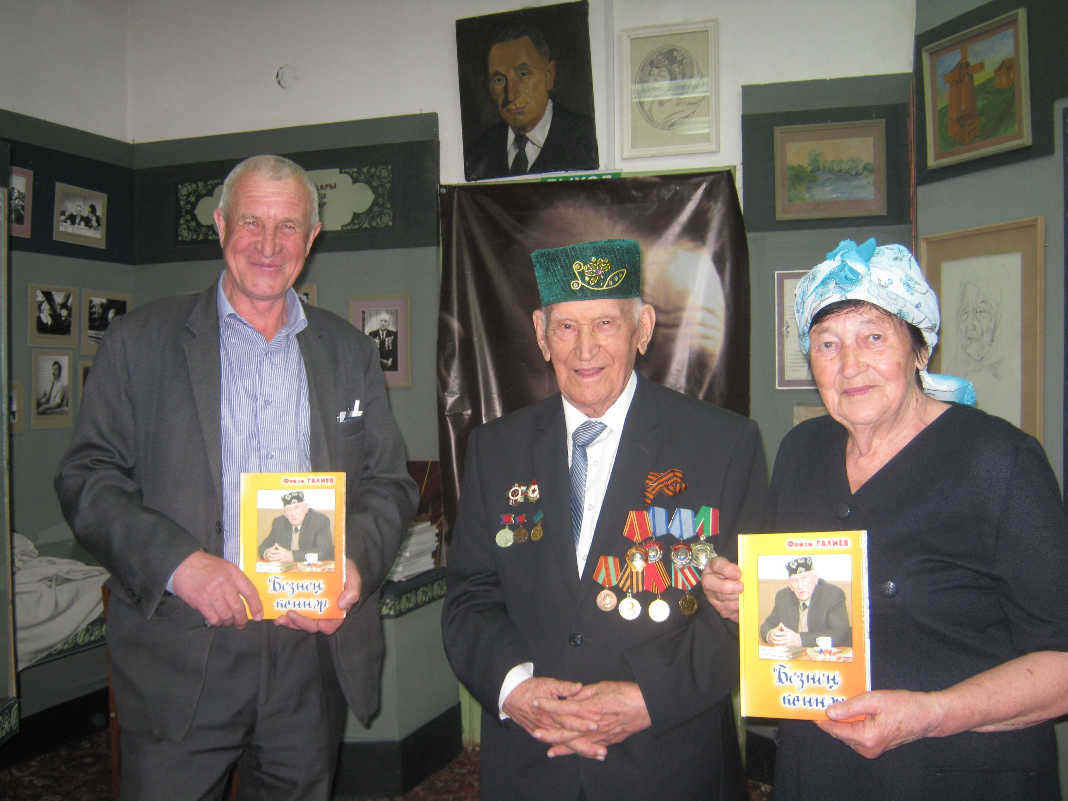 ТУГАН ҖИР КЫРЛАРЫН ЯКЛАП. Фәйзи Әхмәт улы Галиев 1925 елның 2 июлендә Татарстан Республикасының Әтнә районы Түбән Шашы авылында крестьян гаиләсендә туып үсә. Күрше Күңгәр авылының җидееллык мәктәбен тәмамлагач та хезмәт юлын башлый: туган авылы «Чулпан» колхозында хисапчы булып эшли. Бер үк вакытта 1941–1942 елларда авыл яшьләренең комсомол оешмасын җитәкли. 1942 елның декабрендә Фәйзи Галиев армиягә алына. Сарапул шәһәрендәге пехота училищесында кыска сроклы курсларны тәмамлаганнан соң, башка курсантлар белән берлектә ул фронтка озатыла. Смоленск шәһәре өчен барган сугышларның берсендә каты яраланып, дүрт ай Уфа госпиталендә дәваланып ятканнан соң, гаскәри хезмәттән бөтенләй азат ителеп, 1944 ел башында туган авылына кайта.Сугышка алынуы һәм сугыш вакыты турында Фәйзи Галиев түбәндәгеләрне сөйләде: -1942 елның декабрь аенда Тубән Шашы авылындагы Чулпан колхозында комсомол оешмасы секретаре булып эшләгәндә, мине комсомолның Әтнә райкомына дәшеп алдылар. Миңа 17 яшь иде. Хәрби училищега укырга барырга дип димләргә чакырганнар икән. Сөйләшкәндә бу эш ачык калган кебек иде, шуннан озак та үтмәде, мине хәрби комиссариатка чакырдылар. Иң беренче сүз итеп хәрби комиссар: "Үз теләгегез белән хәрби училищега китәргә уйлавыгыз белән котлыйбыз", - диде. "Сезгә 1943 елның июль аенда 18 яшь тула икән, нәкъ шул вакытта сез үзегез барасы хәрби училищеда укып бетереп, лейтенант дәрәжәсе алачаксыз", - диделер. Училищега барырга хәзерләнеп торырга кушып, кайтарып җибәрделер. Шулай итеп, мине Удмуртиянең Сарапул шәһәренә, сугыш булган жирдән күчеп килген Смоленск пехота училищесына язып та куйдылар. Минем белән бергә районнан тагын берничә егет китте. Училищеда уку вакыты 6 ай иде. Тик училищены тәмамларга туры килмәде. 1943 елның җәендә Курск, Орел шәһәрләре тирәсендә барган сугышларда безнең ил солдатлары зур җиңүгә ирештелер. Югалтулар да куп булды. Хәрәкәттәге армияне тулыландыру өчен, укуны өзеп, безне шунда җибәрделәр. Смоленск тирәсендәге сугышларда катнаштык. Смоленск шәһәре Духовщина-Ярцево районы янында снаряд кыйпылчыгы тиеп бик каты яраландым. Шундук кыр госпиталендә операция ясап, Калинин шәһәренә озаттылар. 1944 елның башында сугышка яраксыз булып авылга җибәрделәр. Икенче көнне иртә белән хатын-кызларның: “80 кеше ачтан шешенеп ята”, дигәннәре әле дә колак төбемдә яңгырап тора. Безнең “Искра” колхозына кергән авыллардан 858 кеше армиягә киткән, шуның 580нән артыгы үлгән. 600 тол хатын белән эшләдем мин. Ул хатын-кызлар кайлардан көч алды икән, ди. Шул елның җәендә Галиев Фәйзи Әхмәтхан улын, унтугыз яшьлек инвалид егетне, колхоз рәисе итеп сайлап куялар. Бу вазифаны ул кырык тугыз ел (1993 елның җәенәчә) берөзлексез башкарып килә. Ф.Галиев эшләгән чорда авылыбызда больница, балалар бакчасы, пекарня, Татарстандагы иң зур терлекчелек комплексы, мәдәният йорты төзелде. Колхозның 650 йортына колхоз хисабыннан шул замандагы акча белән 3 миллионнан артык сумлык газ кертелә. Шул дәвер эчендә колхоз күрше-тирәдәге җиде авылны берләштергән иң эре һәм алдынгы хуҗалыкларның берсенә әверелеп, колхозчылар Фәйзи Галиевне егерме бер мәртәбә үзләренең җитәкчеләре итеп сайлыйлар. Ул эшләгән чорда авылыбыз КПСС Үзәк комитеты, СССР Министрлар советы Күчмә Байрагы, РСФСР Министрлар Советы Кызыл Байрагы, СССР авыл хуҗалыгының Күчмә Кызыл Байрагы, ике мәртәбә 