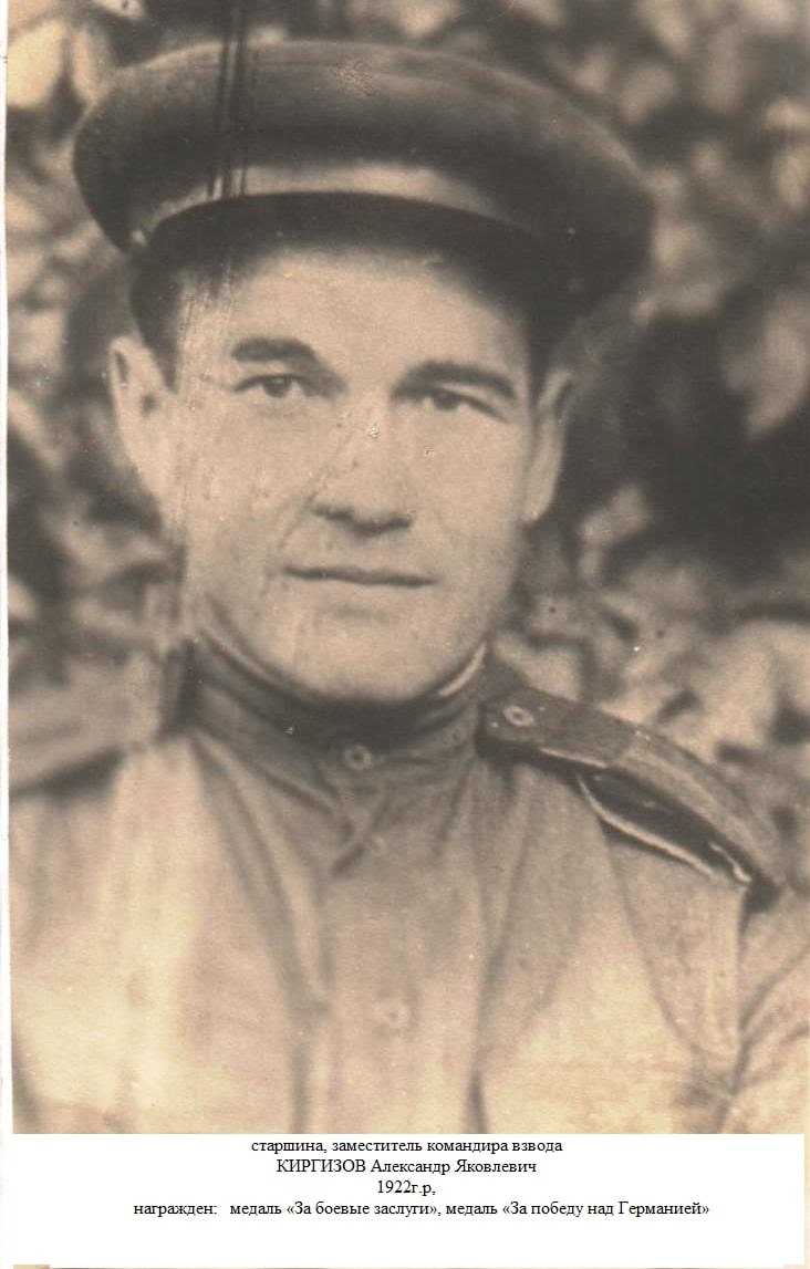 Киргизов Александр Яковлевич 1922 елда ТАССРның Спас кантоны Такталы авылында (хәзер ТР Әлки районы) туган. Бөек Ватан сугышы ветераны. ТАССРның Кузнечиха район хәрби комиссариатыннан чакырыла. 2001 елда вафат.