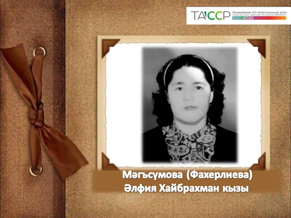 МӘГЪСҮМОВА (ФАХЕРЛИЕВА) ӘЛФИЯ ХАЙБРАХМАН КЫЗЫ