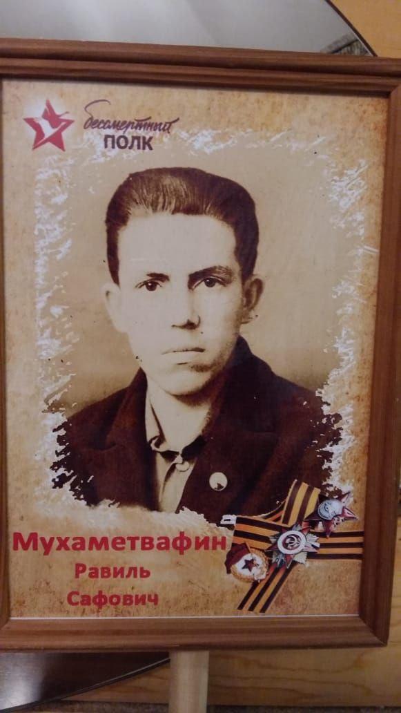 Когда началась война, дядя уехал в Арск за картошкой по просьбе бабушки. Ему было 18 лет. В поезде дядю забрали на войну и бабушка ничего о нем не слышала. Позже, Равиль абый прислал единственное письмо домой с фотографией, где сообщил, что он пулеметчик и сражается под Смоленском. В письме писал: Мама, самый несчастный человек, это пулеметчик......И болоьше от него вестей не было. На обратной стороне фотографии три даты. Последняя 15 августа 1942 года.