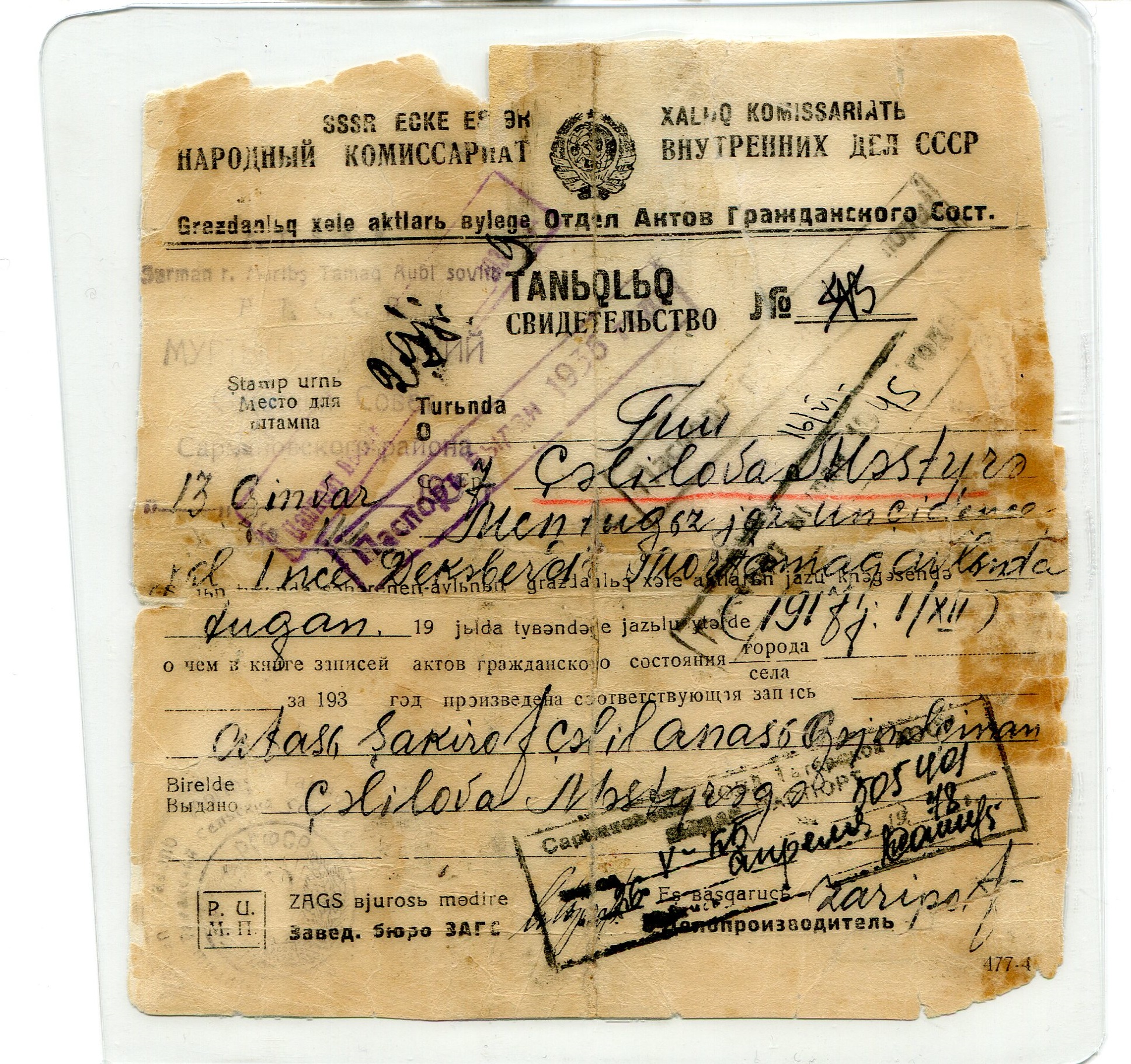 1917 елның 1 декабрендә Сарман районы Мортыш-Тамак (Мортамак) авылында туа. Чистай шәһәренең Мәктәпкәчә педучилищесында һәм Минзәлә шәһәрендә педагогия училищесында укып белем ала. 1940 елга таба ТАССРда язу эшләрен кириллицага күчерү сәбәпле Чистай һәм Минзәлә педагогия училищесы документлары рус телендә язылган. Әмма ләкин 1920-30 елларда ТАССРда гарәп һәм латин алфавиты кулланыла, моңа дәлил булып тора гаилә архивында сакланган, латинча язылган һәм 1938 елда басылып чыккан Г. Тукайның “Сайланма әсәрләре”. Сөйләү буенча, бу китап дәреслек итеп бирелгән. Шулай ук “Туу турында таныклык №4” латин телендә.