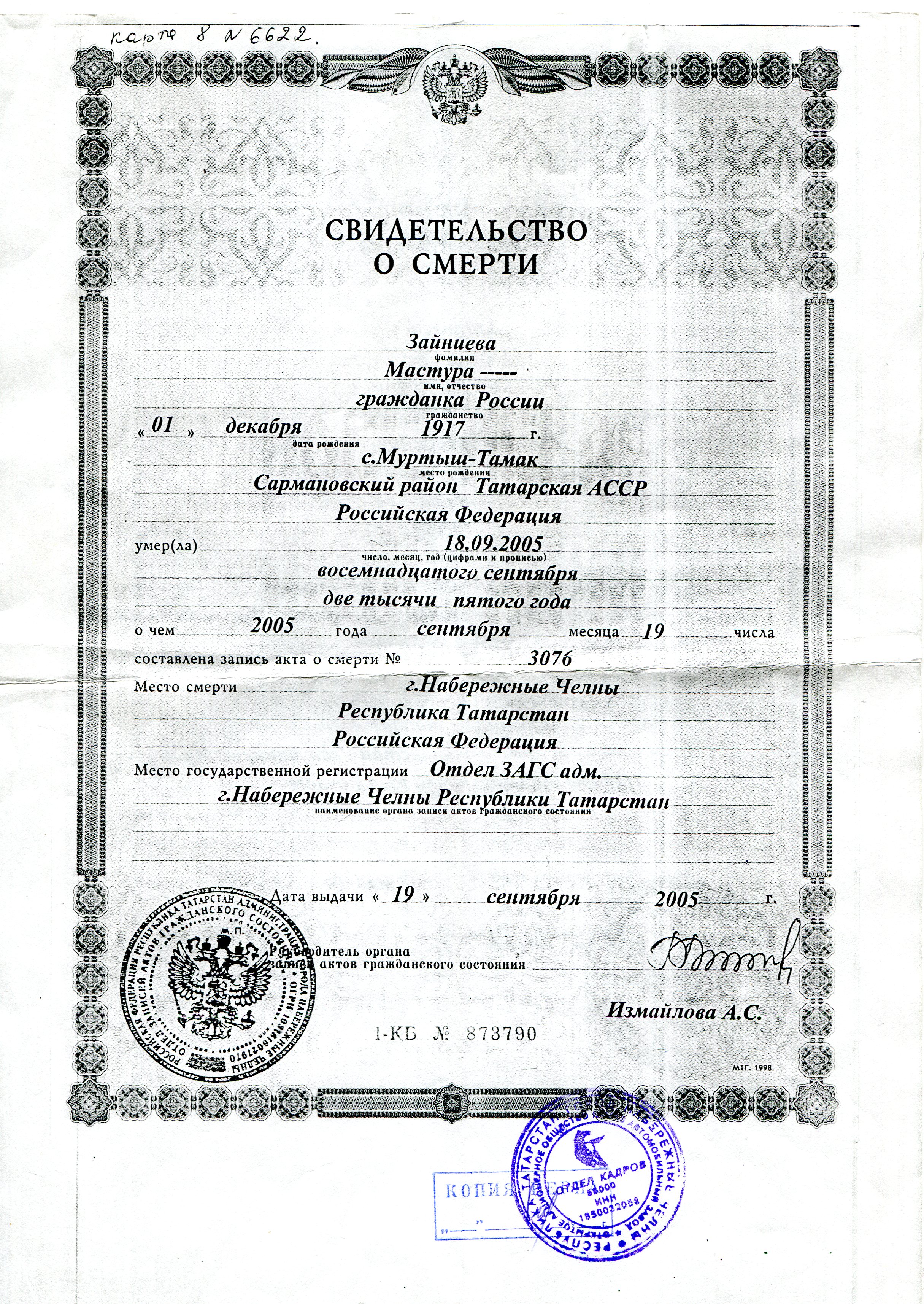 ЗАЙНИЕВА МАСТУРА ЗАЛИЛОВНА