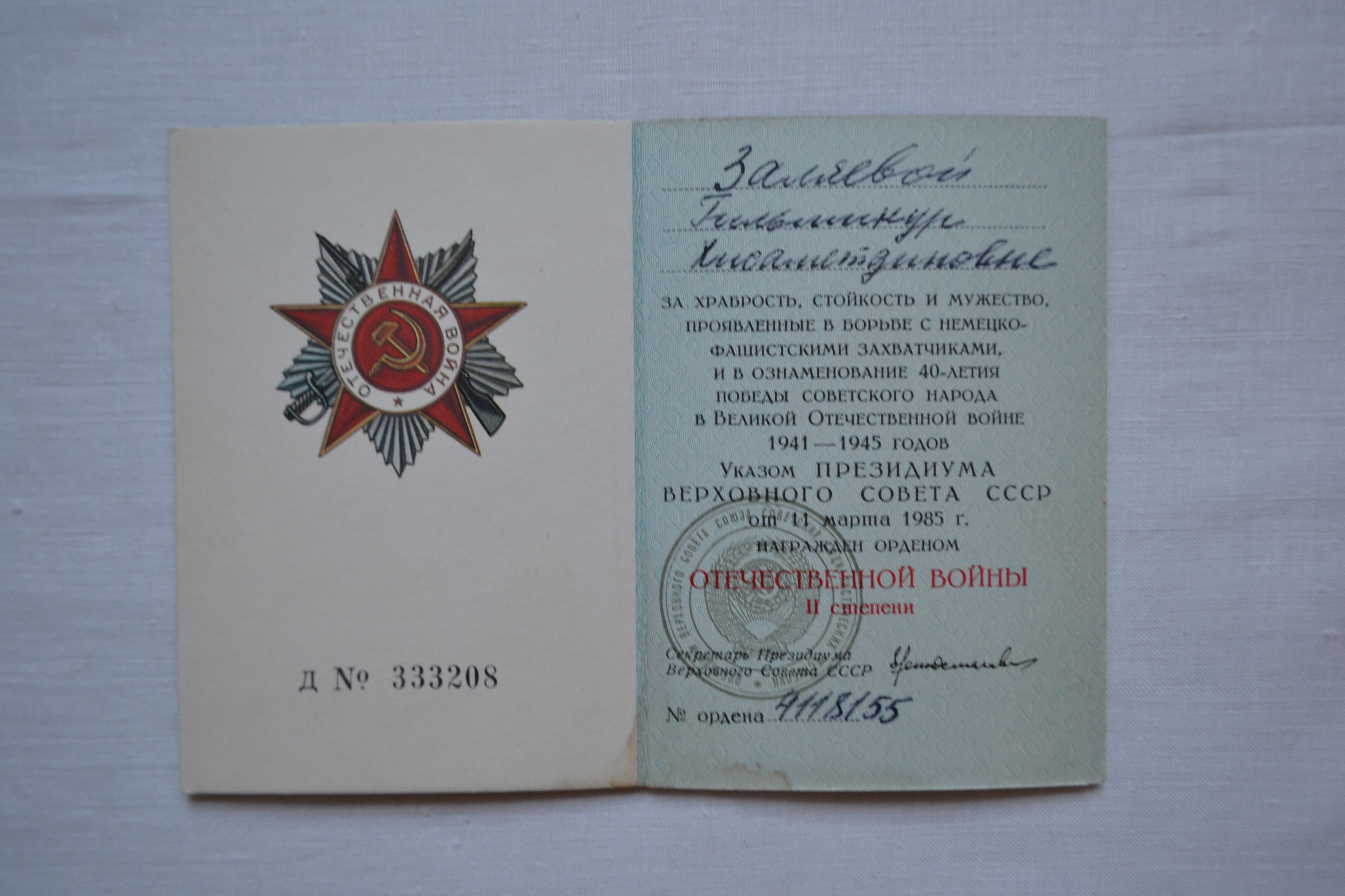 1945 елнын 15 октябрендэ демобилизация турында приказ ала. Хэм нихаять, ноябрь аенда Одессадан узенен туган яклары Азнакайга эйлэнеп кайта.