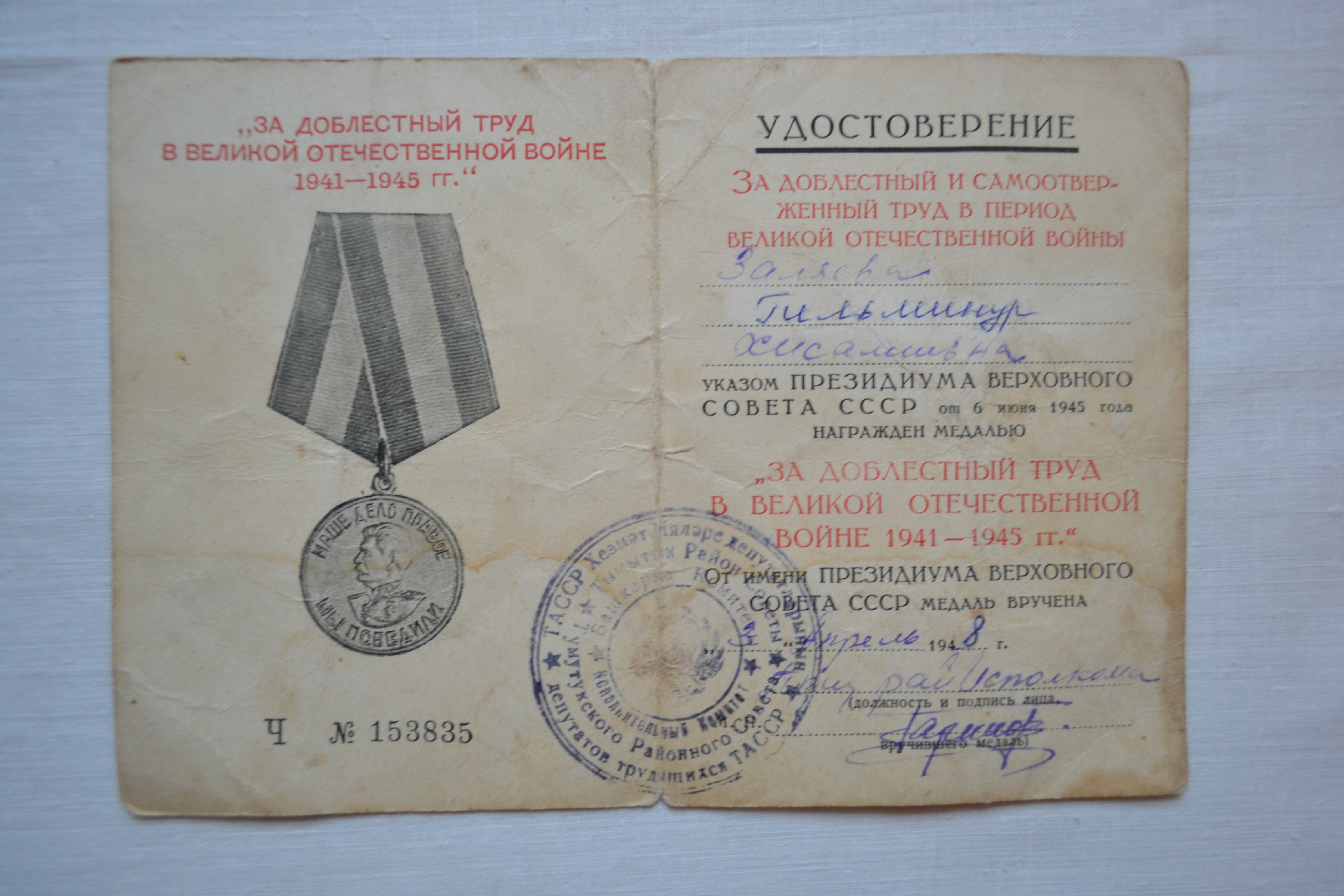 Боек Ватан сугышы ветераны Гильменур Хисаметдин кызы Жэлэева бугенге кондэ Азнакай шэхэрендэ балалары хэм оныклары янэшэсендэ бэхетле гомер кичерэ. Ул яшэгэн йорт диварына «Бу йортта Боек Ватан сугышы ветераны Г.Х.Жэлэева яши» дип язылган такта куелды.