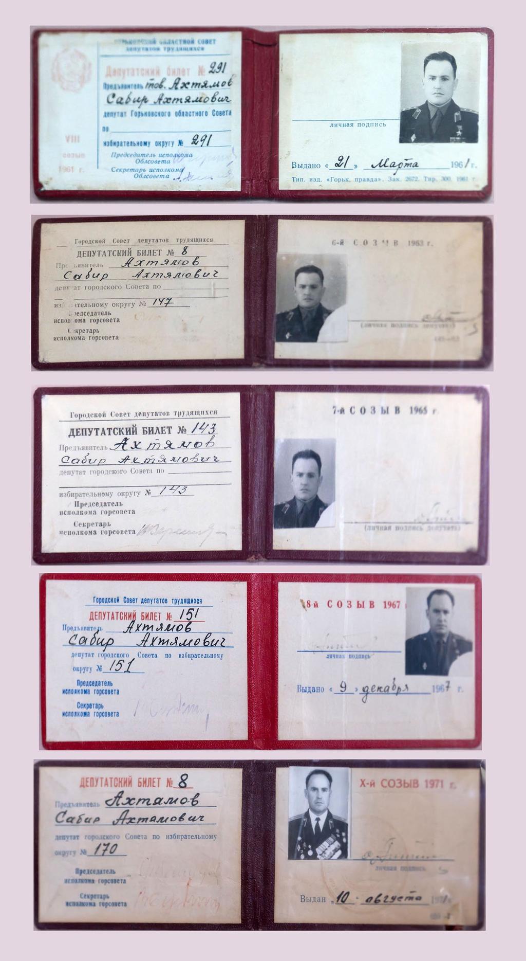 Фото №2185. Депутатские билеты Ахтямова С.А. 1961-1971