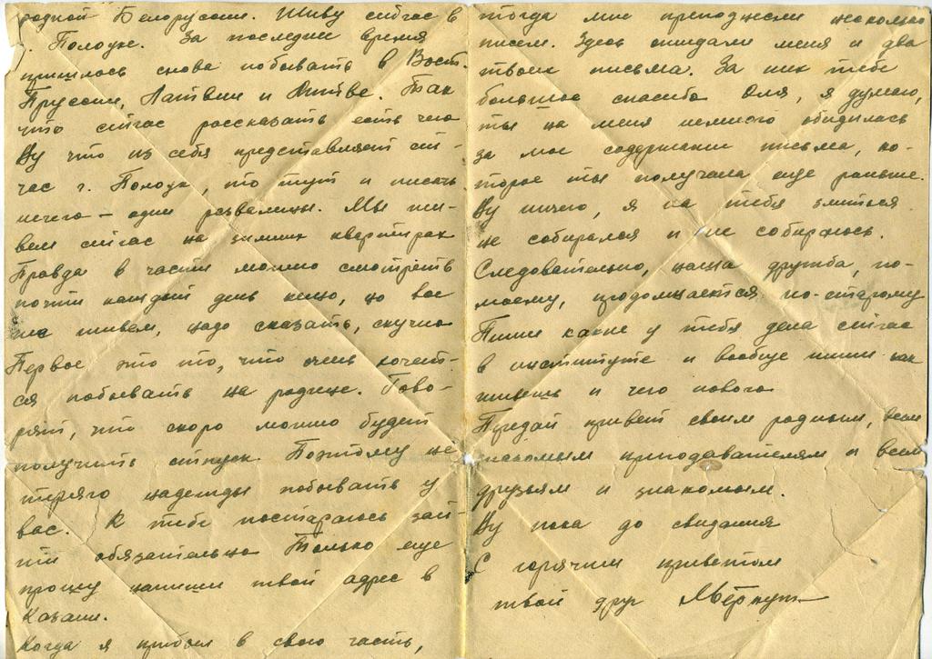 Фото №45238. Письмо-треугольник Егоровой Ольге Григорьевне от Яверпута. 11.09.1945 (стр.2-3)