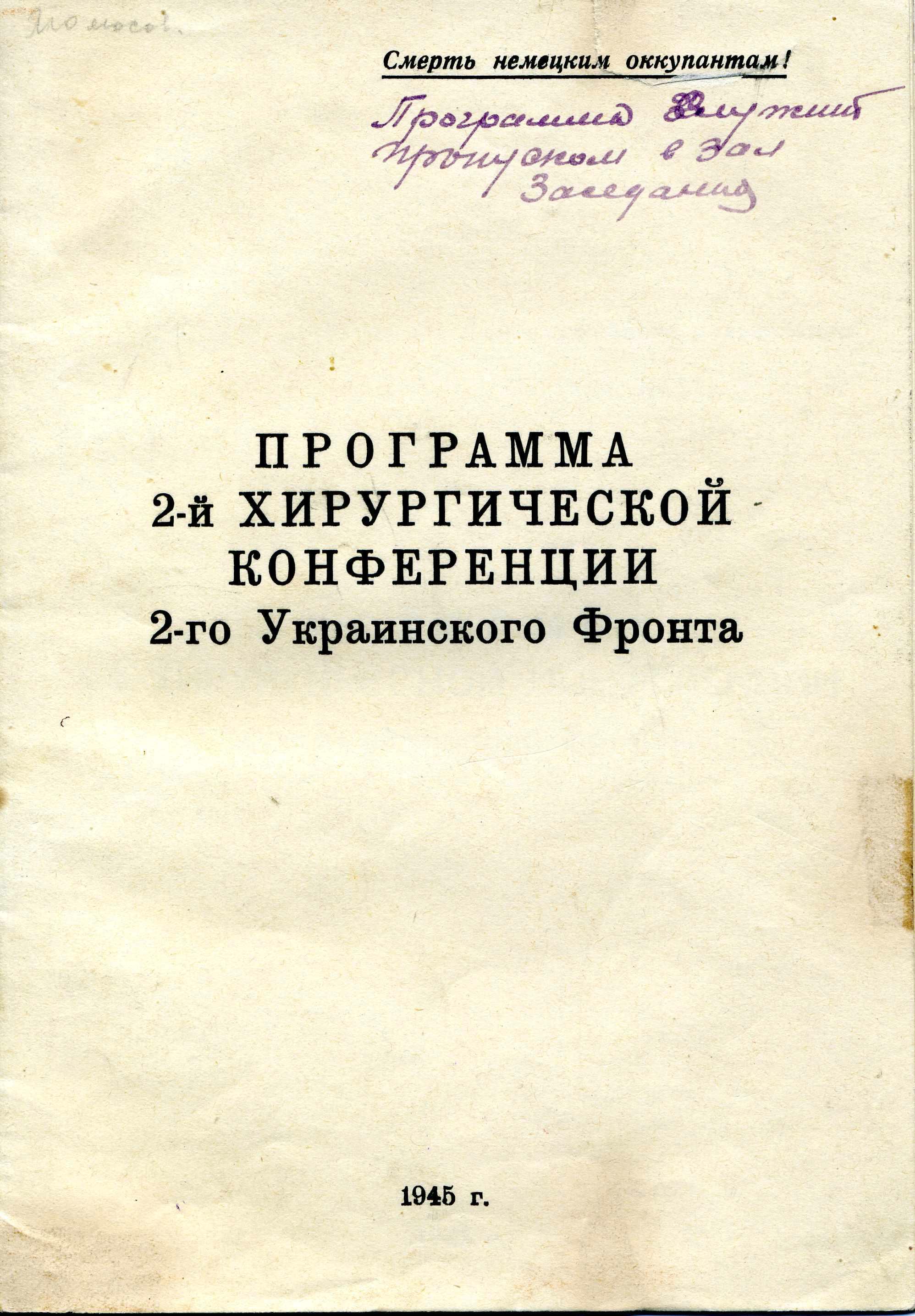 Фото №44892. Программа 2-й хирургической конференции 2-го Украинского фронта. 1945 г.