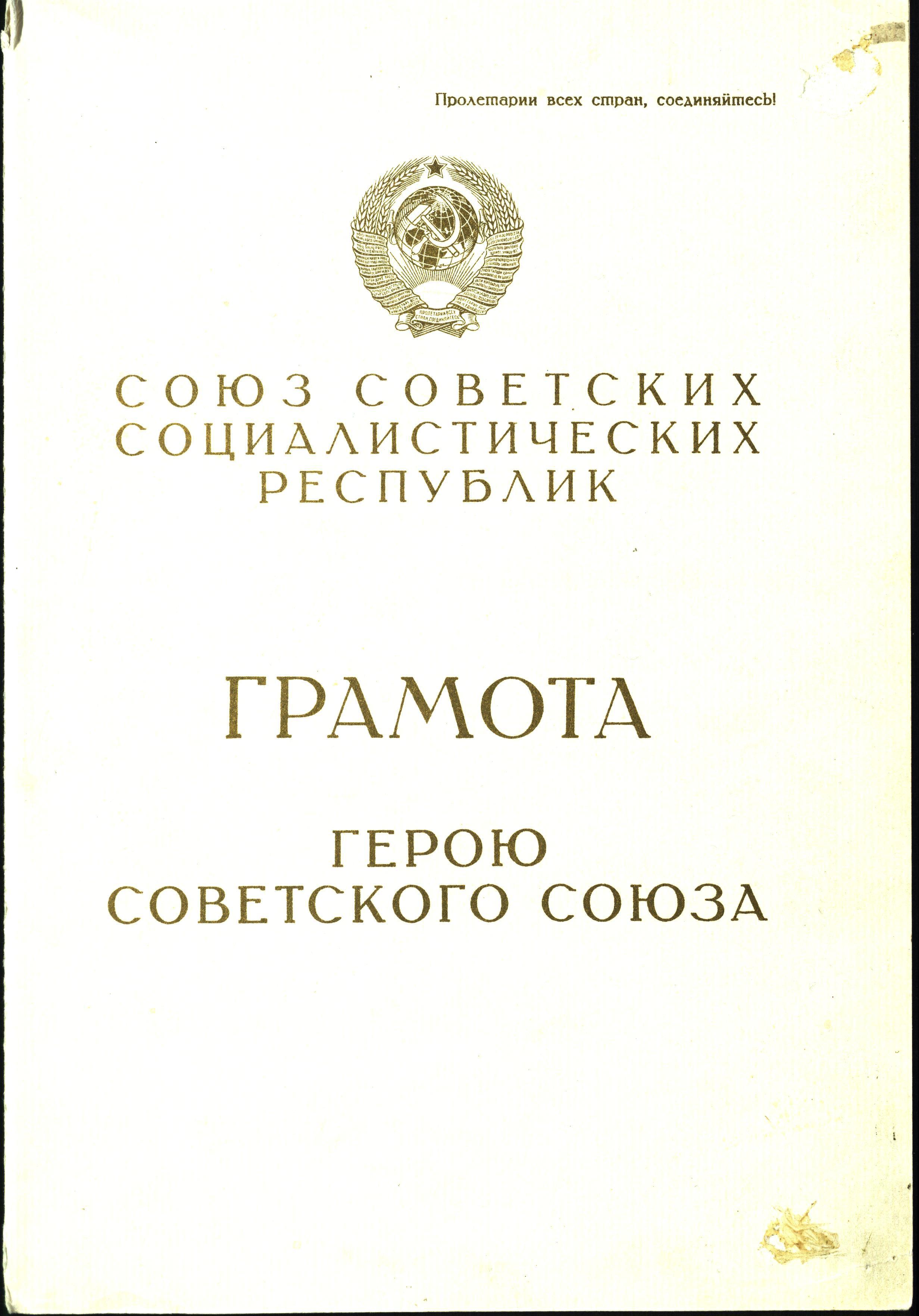 Фото №86405. НМРТ КП-32638 Документ Грамота о присуждении М Джалилю звания Героя Советского Союза_1