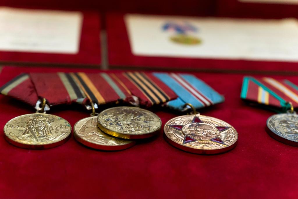 Фото №1129. Фрагмент экспозиции Апастовского краеведческого музея с наградами земляков - участников Великой Отечественной войны. 2014