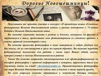 Всех жителей Новошешминского района республики пригласили принять участие в конкурсе «О проведении акции «Семейные фотохроники Великой Отечественной войны» в рамках подготовки к 75-летию Победы в Великой Отечественной войне.
