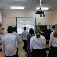 Урок начался с трансляции презентации о героях-поэтах Великой Отечественной войны и творчестве Мусы Джалиля - поэта-героя, и в честь которого названа улица нашей школы. После презентации и доклада учеников 11 класса, выступили и прочитали стихи ученики 8 класса и учителя школы. В завершении была объявлена минута молчания в честь всех героев Великой Отечественной войны.