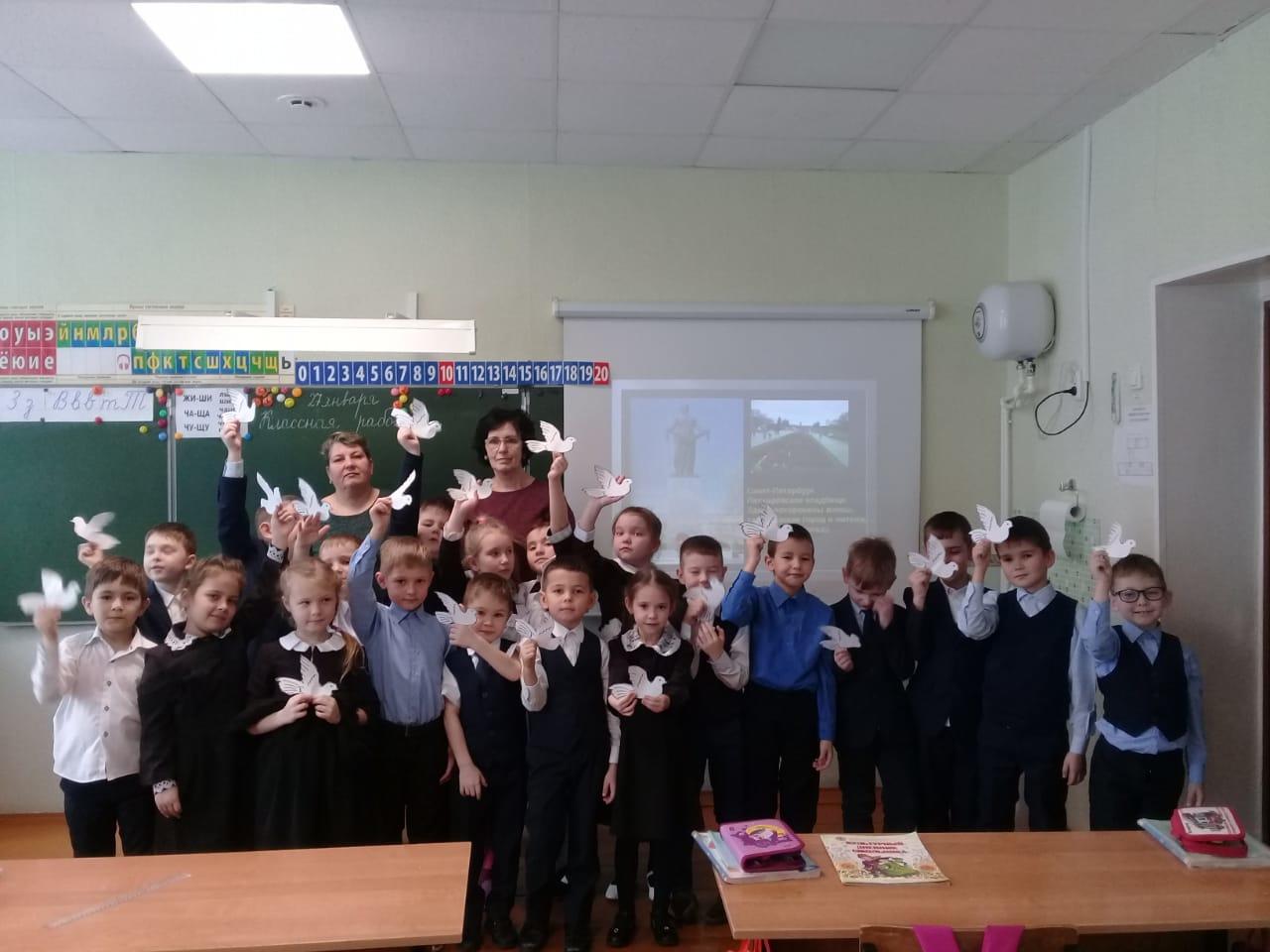 В заключение мероприятия был проведён мастер – класс «Голубь в небо – мир на Землю» по изготовлению белых голубей. В знак благодарности и памяти о всех воинах, подаривших нам мир на Земле, ребята подняли ручки вверх и «выпустили» своих голубей, пожелав друг другу мирного неба над головой.
