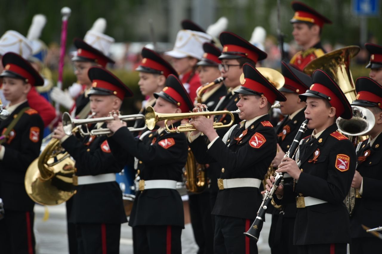 Сопровождает показательное выступление оркестр духовых и ударных инструментов «Корнет» кадетской школы имени Героя Советского Союза Ильдара Маннанова.
