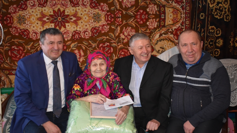 Саиде Сафиулловне вручили поздравительное письмо от Президента России В.В.Путина, поздравительный адрес от главы района А.Ф.Никошина, а также памятный подарок. Пожелали крепкого здоровья и долголетия.