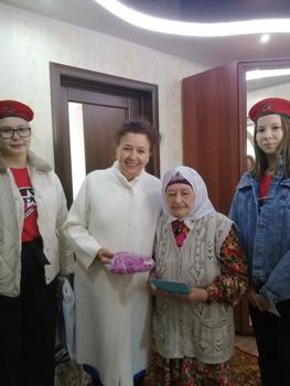 Сегодня, накануне праздника Великой Победы, председатель ТОС «Химик» Альфия Талыпова совместно с юнармейцами Менделеевской школы №3 посетили тружеников тыла и детей войны.