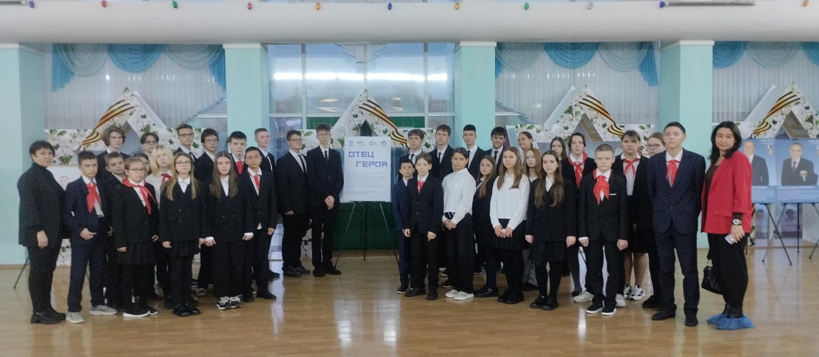 Сегодня ученики 6 Г и 9 Г средней школы № 3 посетили передвижную выставку "Отец Героя"