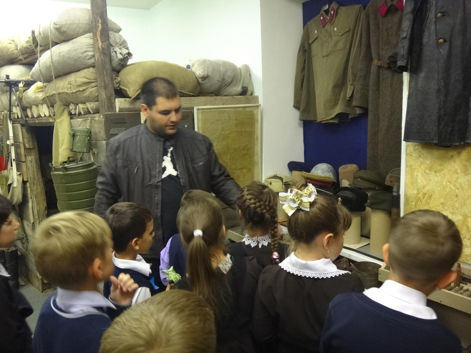 27 сентября музейную комнату военно-исторического клуба "Звезда" при Алексеевском Центре детского творчества посетили сразу 5 групп учащихся начальных классов Алексеевской средней школы №2. Для каждой группы была проведена своя небольшая экскурсия, рассказывающая о целях и задачах работы клуба, знакомящая с основными разделами и наполнением экспозиции. Дети с увлечением знакомились с уникальными экспонатами военной тематики, многие из которых были реальными свидетелями Гражданской и Великой Отечественной войн. Интерактивность музея предоставляет возможность детям самим прикоснуться к истории и подержать в руках практически любые экспонаты, а кое-что даже примерить на себя. Особой популярностью, как всегда, пользовались макеты стрелкового вооружения периода Великой Отечественной войны. Всего в этот день музейную комнату посетили около 70 учащихся в сопровождении своих преподавателей.