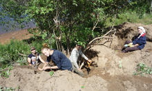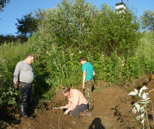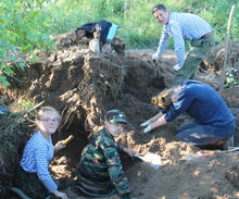 С 1 по 13 июля в ходе работы учебно-поискового лагеря на мемориале «Невский Пятачок» в Кировском районе Ленинградской области 53 члена сводного поискового отряда Ассоциации «Клуб Воинской Славы» собрали останки около десятка советских воинов и нашли 4 солдатских медальона-«смертника». Один из них удалось прочитать: "Петриченко Николай Ефимович, 1920 г. рождения, красноармеец, уроженец ст. Беслинеевская Мостовского района Краснодарского края. Отец Ефим Дмитриевич жил там же." По сайту «ОБД Мемориал» он считается пропавшим без вести в апреле 1943 года. Как сообщил председатель муниципального совета, в станице родных уже нет. Может быть, найдется кто-то из дальних родственников. Нашла медальон на берегу Невы, в основании песчаного мыса ученица гимназии № 96 г.Казани Евгения Тютчева. Это её первая подобная находка, хотя участвует в раскопках она с 2011 года. Хозяин второго медальона, останки которого буквально под невской водой нашел ученик гимназии № 139 Рафаил Халиуллин, не оставил никакой записки, а просто сделал из черного пенальчика мундштук. Потому имя его осталось неизвестным. Двое бойцов опознаны по надписям на котелках: Ярошенко Иван Прохорович, 1919 г. рожд., лейтенант 11 отдельной стрелковой бригады, уроженец с.Худолиевка Оболонянского района Полтавской области. По сайту «ОБД Мемориал» считался пропавшим 26 сентября 1941 г. в районе д.Московская Дубровка на берегу Невы. (Правда, под именем своего родного брата Михаила, который вернулся живым). О нём помнят внучатые племянники на Полтавщине, но на захоронение приехать не имеют то ли возможности, то ли желания. Останки украинца нашел Ильназ Сагиров из гимназии № 6. Ему же посчастливилось найти и солдата со вторым подписанным котелком. К сожалению, фамилия на нём написана не понятно: то ли Чуненко, то ли Луненко, то ли Яхненко. Четко читаются только инициалы - Т. В. Влада Долгушева из с.Верхний Услон нашла солдата с портмоне, в котором был знак Гвардия. Там же были и какие-то документы, но прочесть их можно только с помощью экспертов. Половина отряда работала за дорогой, в посадках, где проходила глубоко эшелонированная оборона сначала вражеская, а потом и наша. Буквально за транспарантом «Слава героям Невского пятачка» ученики гимназии № 6 Диана Демьянова и Виктор Кокорев нашли останки солдата с обломками медальона, звездочкой и ложкой, на которой нацарапано: «ВОI». То, что она тоже советская, можно установить по заводскому клейму «Красный выборжец». Максим Савиди из той же гимназии № 6 нашёл останки солдата с медальоном без крышки. В месте своих многолетних поисков, напротив легендарного куба на Невском пятачке татарстанцы открыли памятный знак с именами тех солдат, кого удалось опознать по медальонам за последние 5 лет. Надпись гласит: «Мы помним Коньшин Александр Федорович, 1908-1941, Абдушукуров Сайдуали, 1923-1941, Емельянов Иван Николаевич, 1908-1941, Егоров Иван Иванович, 1905-1941 и 51 неизвестный солдат. Казанский городской клуб Воинской Славы». Это была двадцатая экспедиция татарстанцев на Невский Пятачок. Все эти годы руководил ею Михаил Черепанов, руководитель рабочей группы Книги Памяти Татарстана, ныне заведующий Музеем-мемориалом Великой Отечественной войны НМ РТ, председатель Ассоциации "Клуб Воинской Славы". Совместно с ним руководили экспедицией директор Ассоциации, ветеран войны в Афган