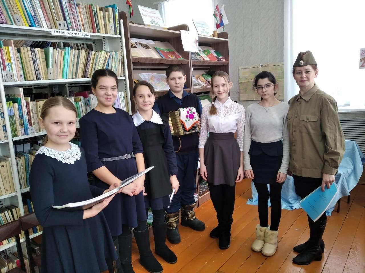В Беркет – Ключевской библиотеке Черемшанского района прошёл патриотический урок “Мин хат язам сиңа 45 тән...” посвященный к 75 летию Великой Победы. Были приглашены учащиеся средних классов. Библиотекарь провела обзор книжно – иллюстративной выставки “Ялкынлы еллар хәтере!” (Память огненных годов) и викторину “Кайсы фронтовик язучының нинди әсәреннән?” (Из какого произведения, какого писателя – фронтовика?) Были представлены предметы, которые упоминались в произведениях писателей – фронтовиков. Учащиеся с большим интересом слушали о фронтовиках – односельчанах, посмотрели альбомы с фотографиями, рассказали о своих пробабушках и продедушках.