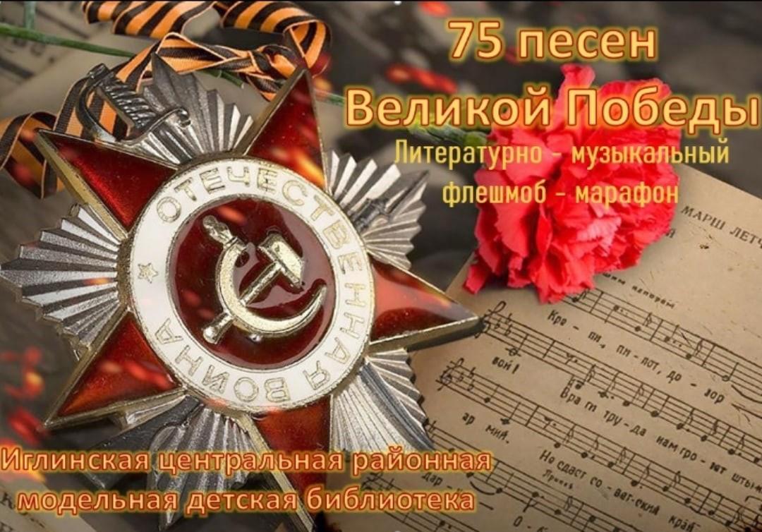 Верхнечегодайская библиотека Черемшанского района присоединилась к литературно- музыкальному флешмоб - марафону "75 песен Великой Победы", посвященному 75- летию Победы в Великой Отечественной войне 1941- 1945 года. Организатор - Иглинская центральная районная модельная библиотека.