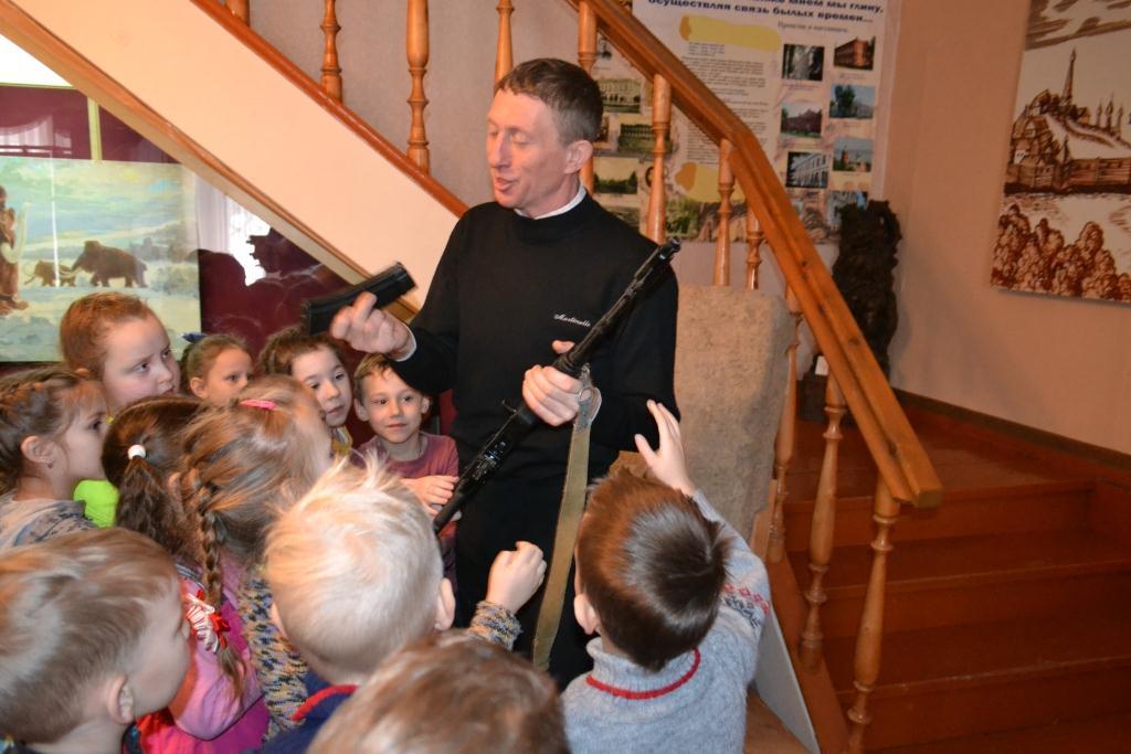 На выставке «Дорогами мужества», посвященной 30-ой годовщине вывода ограниченного контингента советских войск с территории Афганистана, дети смогли не только увидеть экспонаты музея – военную форму, обмундирование, экипировку, награды времен Афганской войны, но и все потрогать, подержать в маленьких ручках. Особо заинтересовал не только мальчиков, но и девочек настоящий автомат Калашникова.