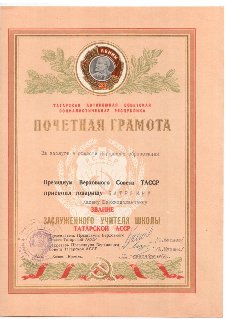 Батршин Хасан Шайхилисламович в июне 1940 года был призван в армию и первый день войны встретил на боевом посту в артиллерийском полку 11 бронетанковой дивизии в городе Кишинёв. Он прошел весь боевой путь от Кишинева до Берлина. Был участником освобождения Румынии, Болгарии, Венгрии, Югославии, Австрии и городов-героев: Новороссийск, Одесса. Когда выпадала свободная минута, он рисовал места боев, чертил карту расположения своего полка, все свои воспоминания он записывал в тетрадь. День победы встретил в Австрии.