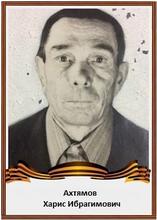 Характеристика из наградного листа: "Тов. Ахтямов за свое пребывание в батарее показал себя смелым и энергичным воином. Будучи неоднократно в боевых условиях, своей энергией и смелостью увлекал за собой товарищей на подвиги, а будучи в бою раненым, превозмогая боли, остался в строю. Своей честной работой на машине достиг экономии в межремотных сроках машины. Будучи в боевых действиях под городами Гросс-Кау (Экау) и Гдыня, где пути подъезда обстреливались противником, шофёр( напарник) был выведен из строя, тов. Ахтямов заменил своего друга и сделал два рейса с боеприпасами на огневые позиции, чем значительно помог в выполнении боевой задачи батареи".